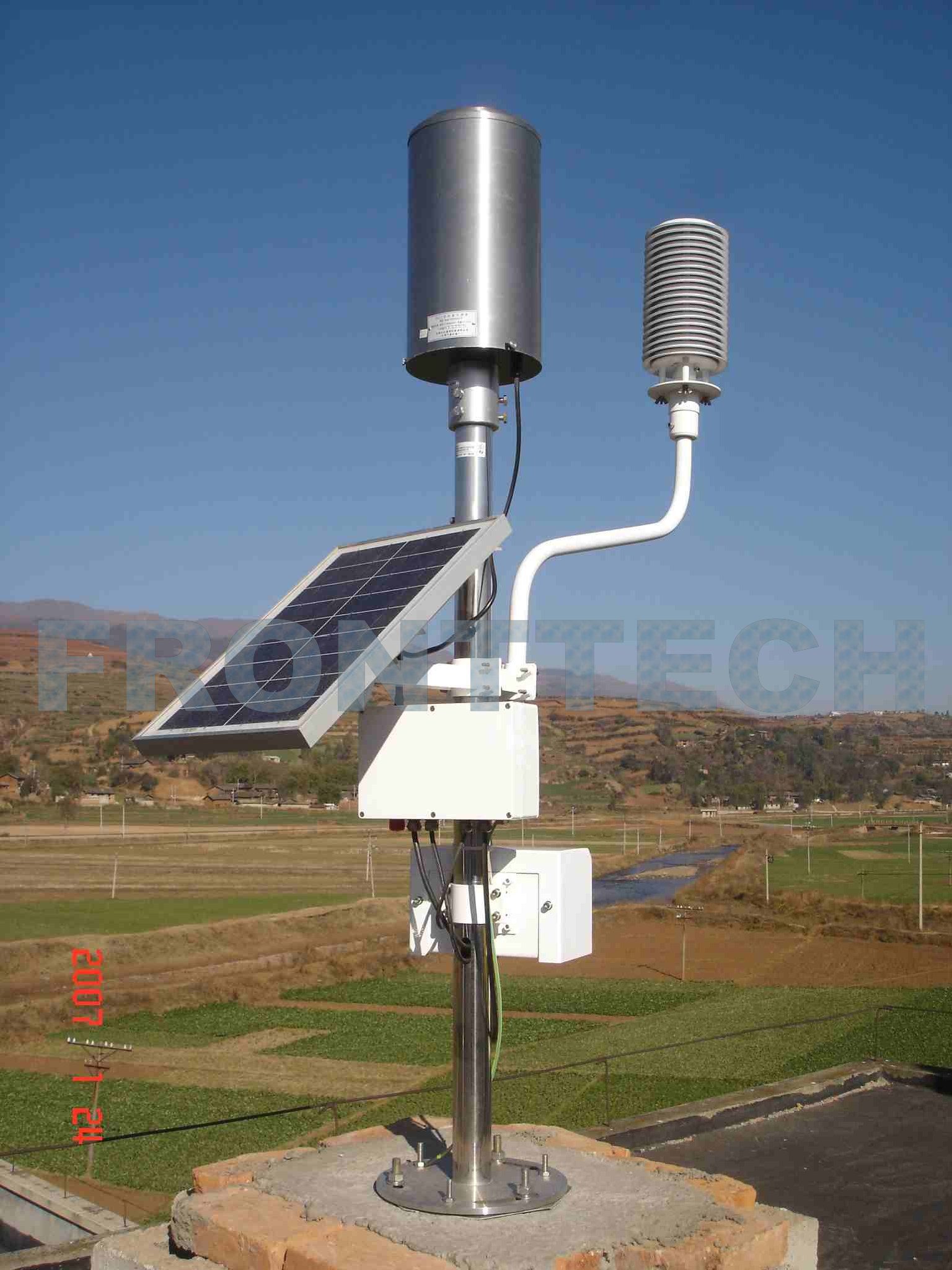 FRT-X2型可擴展自動氣象站是我公司自主研制的一種固定式的地面自動觀測設備。系統采用先進的氣象傳感器、數據采集器、控制處理器、GPRS無線傳輸等,該系統既可進行常規的環境溫度、氣壓、環境濕度、風向、風速、降雨量8類氣象要素觀測。也可根據需要增加露點溫度、太陽總輻射、地溫(包括地表溫度、淺層地溫、深層地溫)、土壤濕度、土壤熱通量、蒸發、二氧化碳、日照時數、太陽直接輻射、紫外輻射、地球輻射、凈全輻射、環境氣體等…